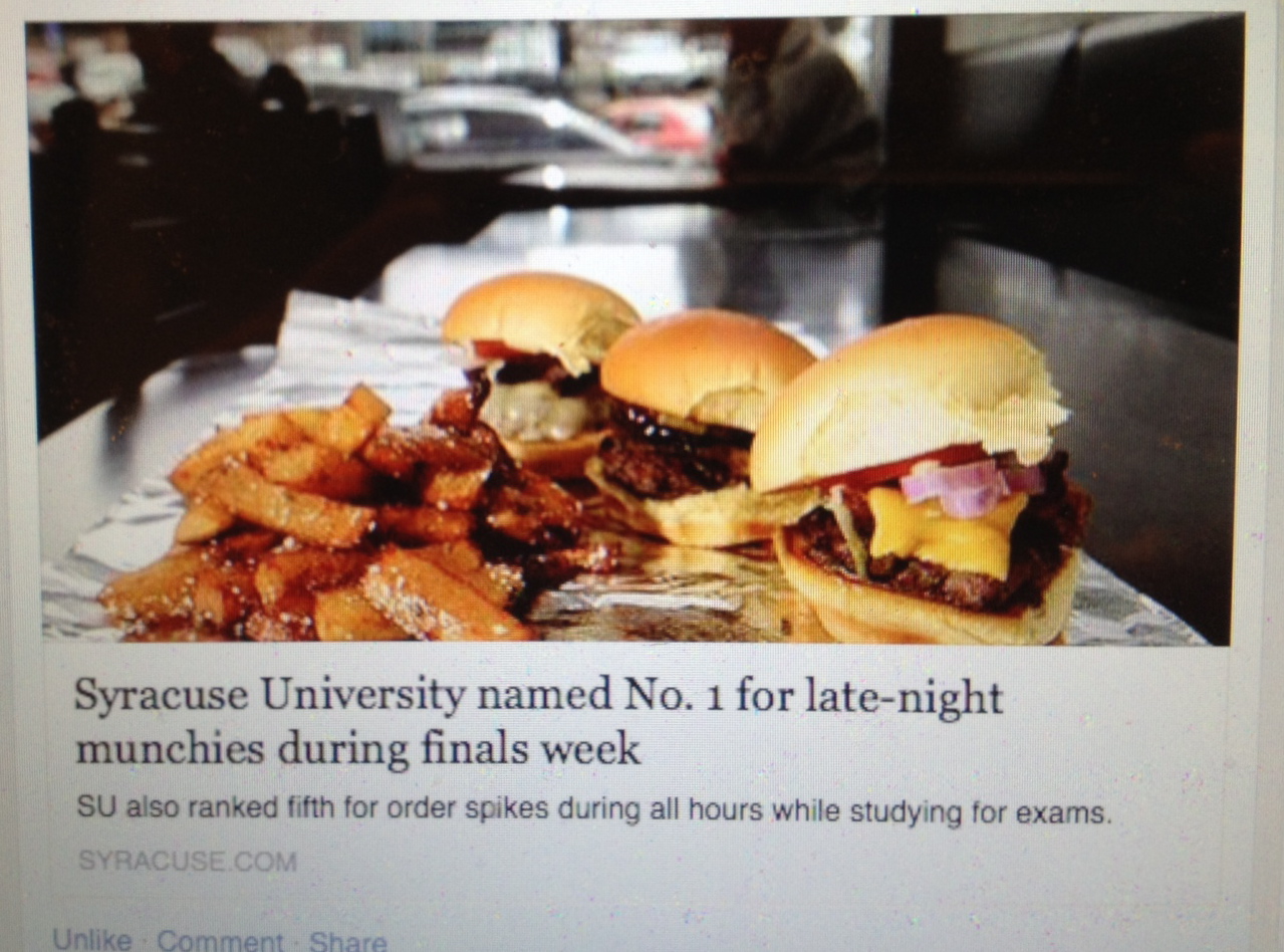If this headline and photo are to be believed, collegiate munchies have definitely stepped up a notch or two since my student days. Those burgers look pretty darn good, don’t they?