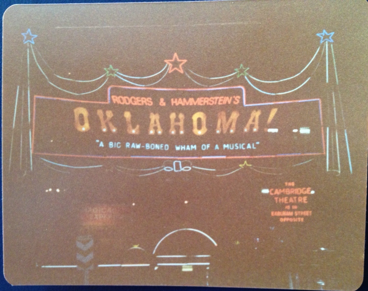 During visits to London, museums and plays were my main focus. Our theatre course required that we write a series of play reviews. It is only fitting, given my parochial outlook, that my first review was of a West End production of “Oklahoma!,” the classic American musical.