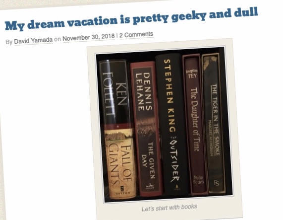 Back in November 2018, I wrote here about my “dream vacation” (link here):