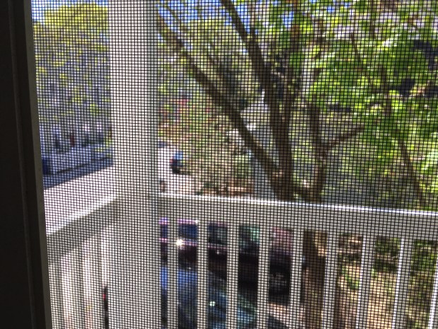 Above, I share a view looking out from my screen door. I opted to use a shot that focuses on the screen lattices rather than on the outdoors, because it says something about the way we’re all living these days.