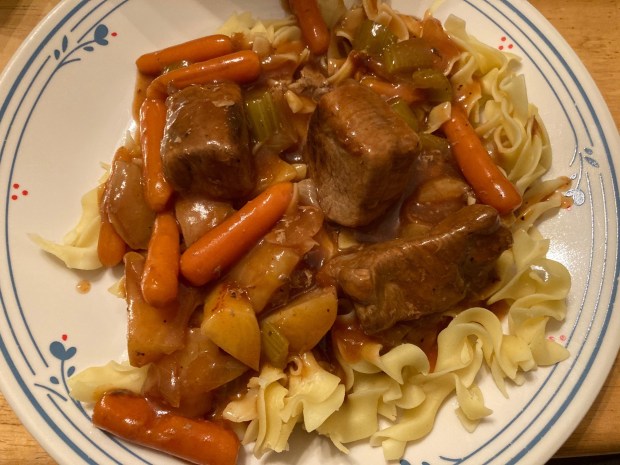 My most ambitious meal is pictured above — beef stew — made with my new Instant Pot, a holiday gift from my dear friends Denise and Magic (the latter, a cat) in Northern Virginia. It took a bit of tweaking, but I figured out how to use the pressure cooker function without blowing up my condo, and the result was the best meal I’ve ever made on my own. I made it with stew meat, potatoes, baby carrots, onion, celery, tomato paste, Worcestershire sauce, sea salt, pepper, corn starch, and beef broth. I put it over noodles or rice.