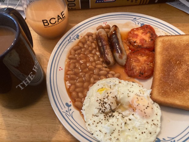 If I was to pick my two favorite home-brewed meals, my version of English breakfast would come in second behind the beef stew. I’ve been to England many times and always enjoyed the full English breakfasts served in B&B hotels. So I decided to make a Boston version of those breakfasts. The key non-local food item is British-style bangers (sausage), ordered from RJ Balson and Son. You need that taste authenticity — other types of sausages just don’t work.