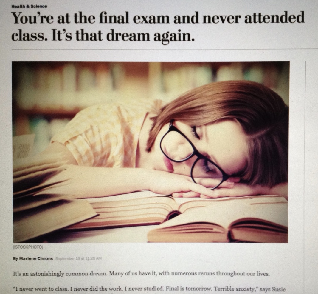 Marlene Cimons writes for the Washington Post about a recurring anxiety dream experienced by many, including yours truly: