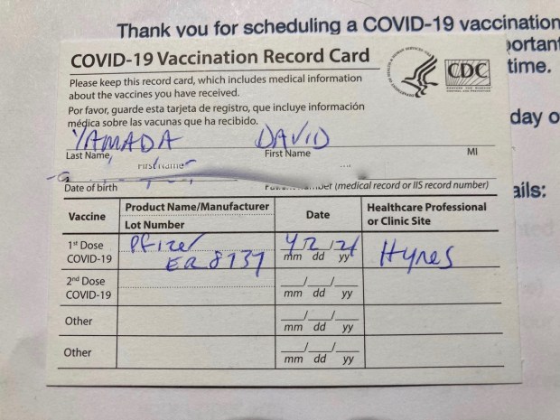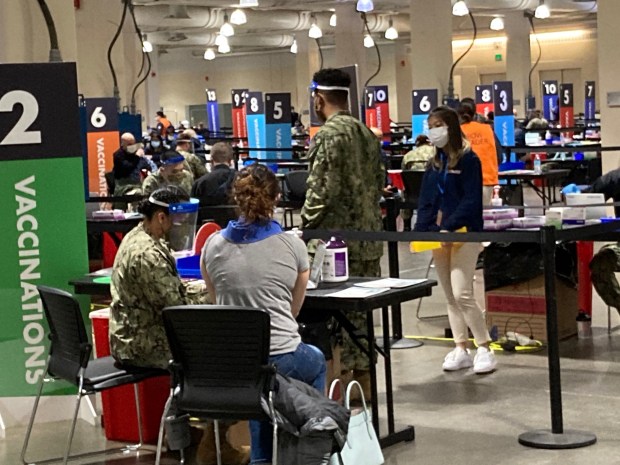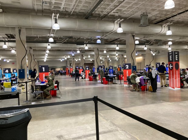 It was quite something to walk into this giant hall and witness a mass vaccination campaign in actual operation. It may be a once in a lifetime experience — er, maybe twice in a lifetime, as I have a return appointment for my second shot in a few weeks. In any event, there wasn’t much time to dwell upon it, because the lines were moving with a speed that an airport traveler standing in a security line could only dream of.