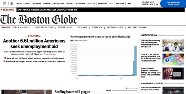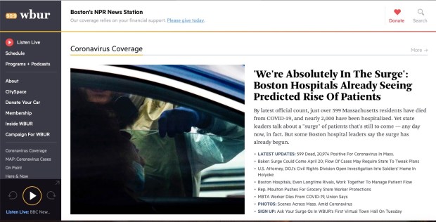 Of course, virtually any news coverage related to this public health crisis is going to push some emotional buttons, but I’ve found myself less anxious and better informed by turning away from TV news and toward sites like the Globe, WBUR, and Universal Hub. They have also given me an even deeper appreciation for the high-quality journalism that still exists in this city, despite the challenges facing the news business. We need these resources now more than ever.