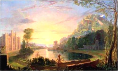 Samuel Morse's landscape picturing the university as paradise, using NYU's original Gothic style building (1835-36)