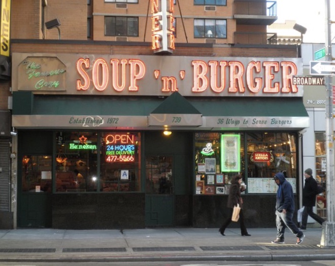 During that time, two such places were regular stops for me, the Washington Square Diner on West 4th Street and 6th Avenue, and the Cozy Soup ‘n’ Burger on Broadway and Astor Place. It’s no accident that both are in the heart of Greenwich Village, near the buildings of New York University, where I went to law school. The Washington Square Diner was a short walk from Hayden Hall, then the primary dorm for first-year law students. The Cozy Soup ‘n’ Burger was close to the Mercer Street residence hall, where most second and third year law students lived.